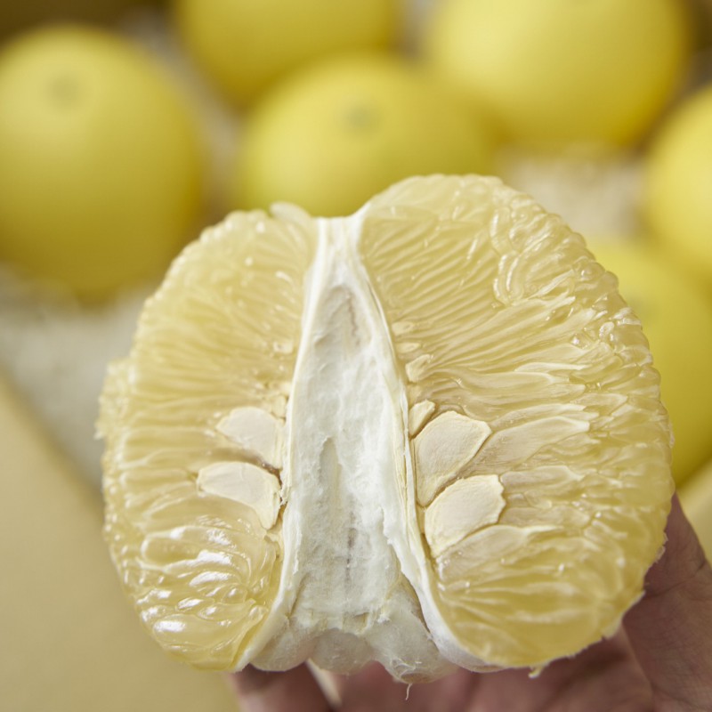 蜜柚,則是屬於白色的果肉,甜度大約11度以上,比起西施柚,蜜柚的酸甜感受更濃郁了一些,也屬於清甜中帶酸的口感,放軟一些吃的時候,也十分多汁酸甜。